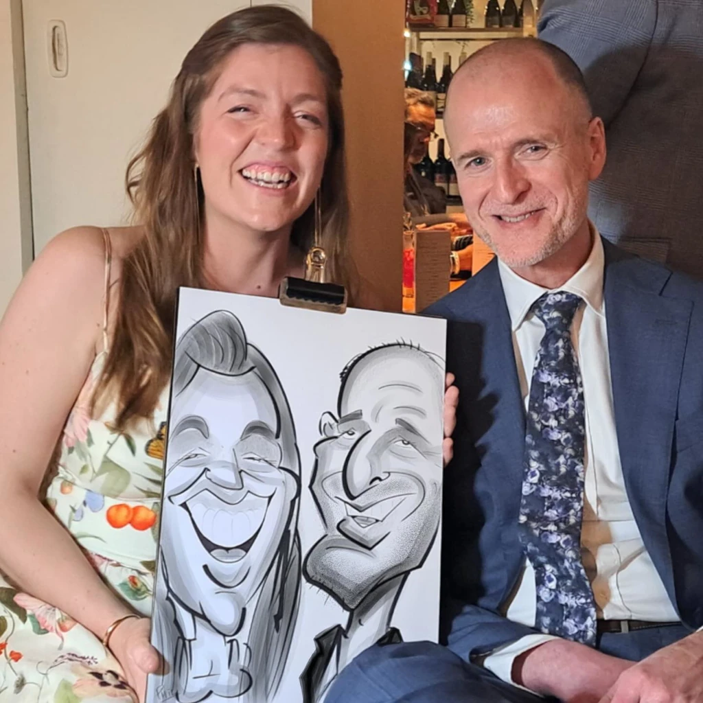 Yes — couples are one of the most popular requests at weddings! I can draw two people in a single caricature so you receive a memorable keepsake together.
